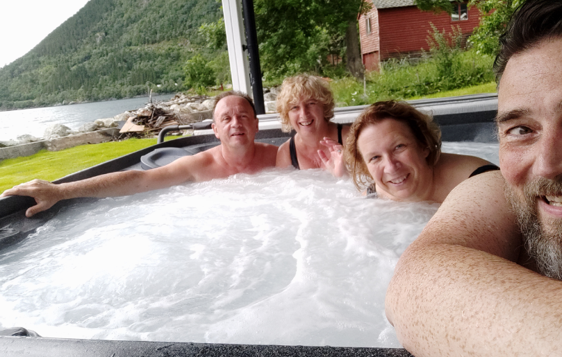 Pas mal de péripéties tout ça non? Pour se détendre, quoi de mieux qu’un petit jacuzzi… tout ça face au fjôrd, sympa non?