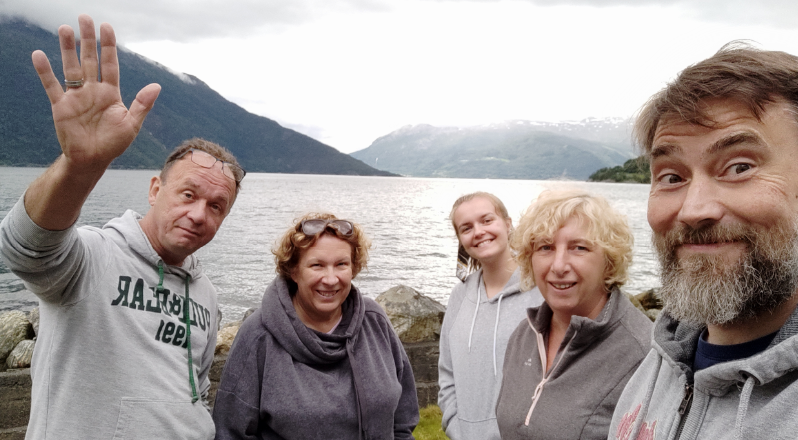 Après le petit dej (où Nath a réussi à rester coincée dans la cuisine, la porte coulissante ne voulant plus s’ouvrir – finalement son chevalier l’a délivrée 🙂 ), on refait nos valises et on se met en route vers 9h vers Røldal et ensuite Ringøy où on reste 4 nuits, le temps de rayonner un peu tout autour.