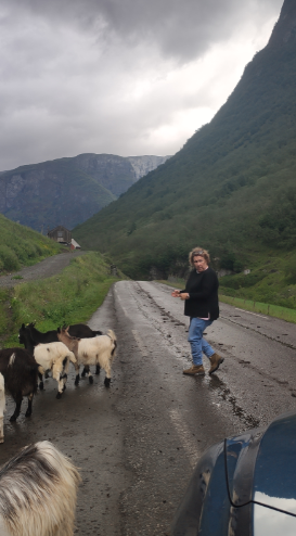 La route est sympa jusque Sinnes et ensuite, elle est vraiment belle jusque Lysbotn. On croise régulièrement des moutons sur le bord du chemin (ou même sur le chemin de temps en temps – faut faire gaffe !)