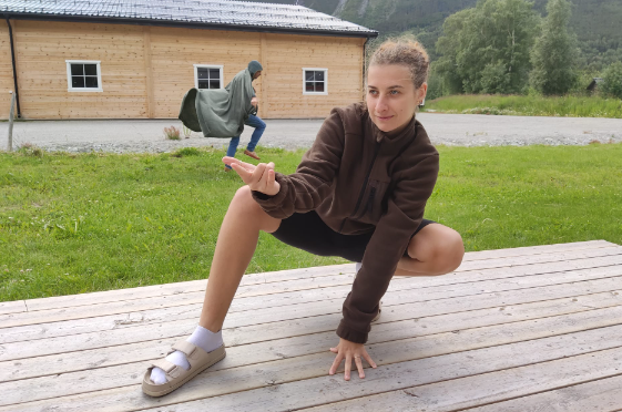 Nath et moi sommes réveillés les premiers, on décide de commencer le petit dej sans les autres, car le salon de la cabane est un peu juste pour qu’on puisse y manger à 7. Petit dej sans café (bah oui, pas d’électricité – pas de cafetière) – je vais être de mauvais poil toute la journée (en vrai ça va, ça a été 😉 )