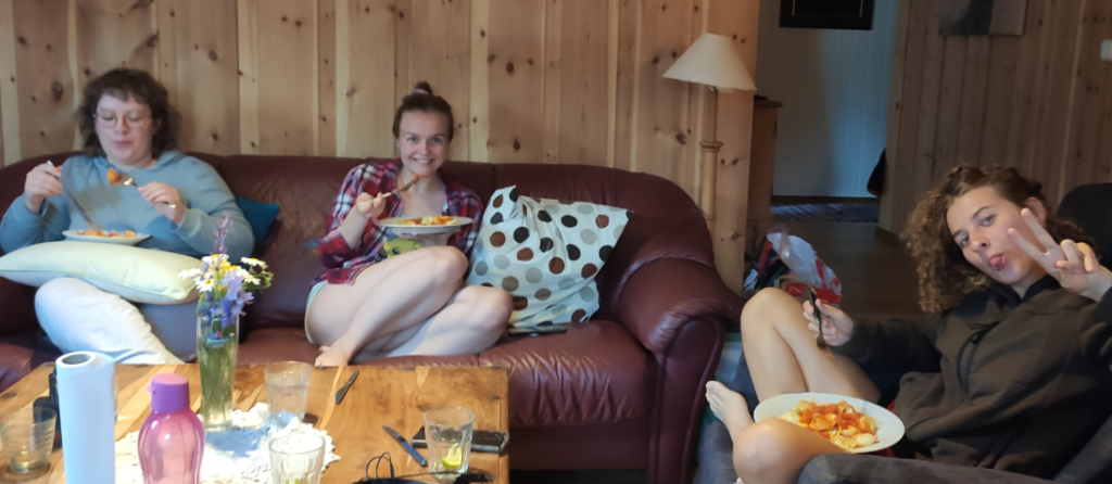 On rentre ensuite à la maison, il est 17h30, certains vont dans le jacuzzi, d’autres préparent l’apéro et le repas du soir, d’autres encore vont prendre leur douche.