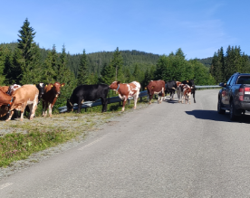 Après les chèvres qui bloquaient la route il y a quelques jours, cette fois on est confronté à des vaches (c’est quand qu’on a des élans ou des rennes?). Et là bizarrement ya personne qui descend de la voiture pour dégager le passage.. bon au bout de quelques minutes, on peut passer, ouf