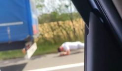 Le gars juste derrière moi est super énervé de ce bouchon, il doit avoir une vingtaine d’année, il est avec sa copine, et, comme il commençait à s’ennuyer grave, bah, pourquoi pas faire des pompes,des abdos et du gainage sur le bord de l’autoroute, hein? C’est vrai quoi, comment n’y ai-je pas pensé avant