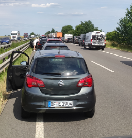Et puis, à 30km d’Hamburg, bouchon, mais un beau, un du genre ‘tu bouges pas d’un cm pendant 45 minutes’, tu vois 4 dépanneuses te passer à côté, il va y en avoir pour un bout de temps.