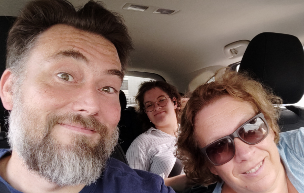 On se réveille tôt ce matin (impossible de dormir après 6h30 – l’excitation du départ). Il nous reste quelques affaires à mettre dans les sacs, les petits sandwichs à préparer pour la route. C’est alors que la première anecdote de la journée arrive :