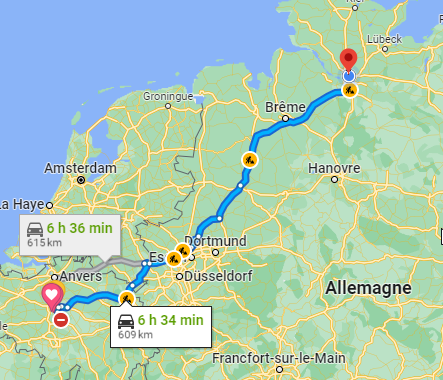 Bref, on se met en route vers 8h15, l’itinéraire du jour : Hamburg (en passant par Liège, Dortmund, Brême, …