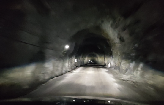 A un moment donné on arrive dans un tunnel de 3km de long où il faisait vraiment noir, tu entres dans les entrailles de la montagne… Un peu flippant