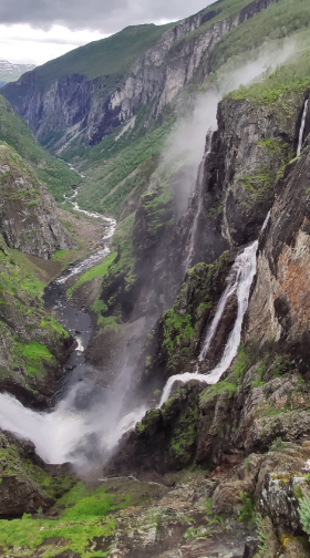 Ensuite on s’est rendu à Vøringfossen pas très loin de là où il y a une énorme chute d’eau (Fossen = chutes – je parle couramment le Norvégien maintenant).