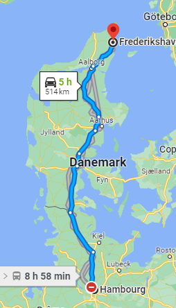 Une pause déjeuner vers 13h30 le temps de manger un fish & chips pour moi et des nuggets pour les filles…et on arrive à Frederikshavn vers 17h.