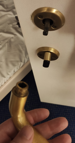 Petite galère du matin, petite douche rapide où la clenche reste dans ma main. Coco a aussi une chouette petite tête au réveil non?