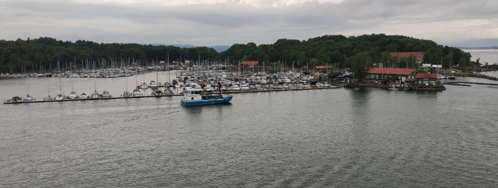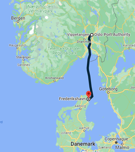 Vers 10h le ferry arrive à bon port. On débarque et on passe la douane. Et là le gars me demande ce que je viens faire en Norvège. Et comme je lui parle d’Airbnb il veut voir l’itinéraire. Donc on lui montre la carte, sa réaction : ‘Oh, it’s a great trip !’. Il avait l’air super intéressé. Merci Monsieur on peut y aller maintenant? C’est pas que je ne vous aime pas mais on aimerait bien ne pas papoter pendant 1h hein !