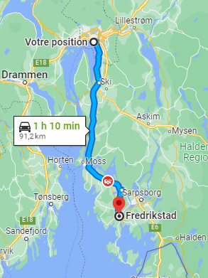 Pendant ce temps les 4 autres sont repassés devant et on se donne rdv à Fredrikstad à 1h15 au sud d’Oslo (Oui après le Havn on passe au Stad)
