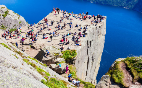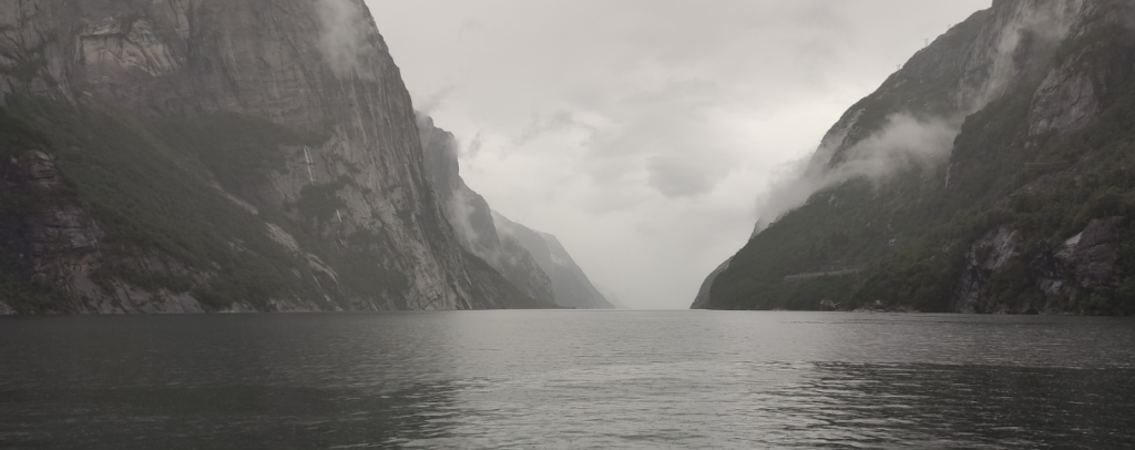 Alors, le programme de la journée était au départ d’aller faire la randonnée du Preikestolen qui avait l’air super bien, faite pour les randonneurs chevronnés, 3h30 de marche, bien sportif, nous quoi ! Mais comme la météo est mauvaise on décide de faire autre chose