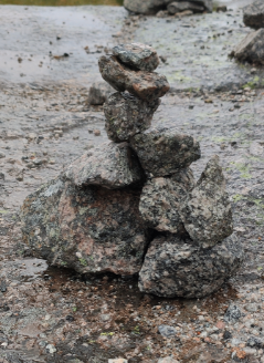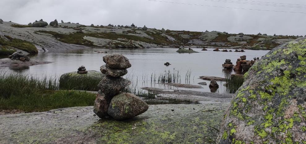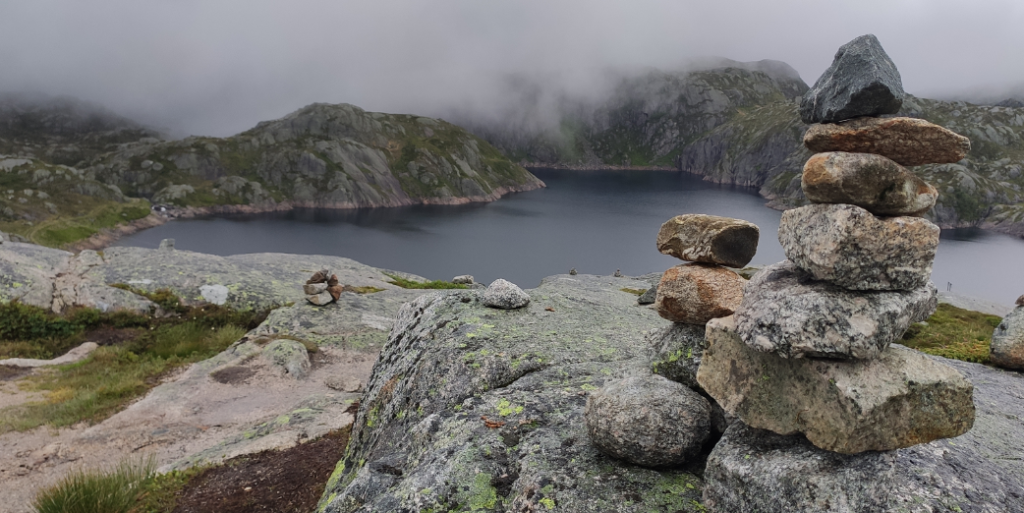 A un moment donné on tombe sur un plateau rempli de cairns (vous savez les petits cailloux mis l’un sur l’autre et qui portent bonheur), donc on fait aussi le nôtre.