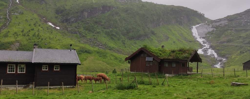 Aujourd’hui journée plus cool, on se lève un peu plus tard, on prend notre temps et on prend la route vers 9h30 vers Voss pour refaire le plein… de vin blanc… Eh oui on avait pris un cubi avec mais malheureusement il est déjà vide… On boit trop!. En Norvège c’est comme en Islande, ce sont des magasins d’état qui vende de l’alcool et le plus proche était a Voss.