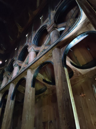 Arrivée à Vik vers 13h on trouve une autre église en bois debout (une Stavkirke comme à Rholdal ). L’entrée coûte tjs 8€ par contre… (pince me et pince moi sont sur un bateau… Moi une pince ??? Noooon) .mais elle est encore plus jolie que la précédente.