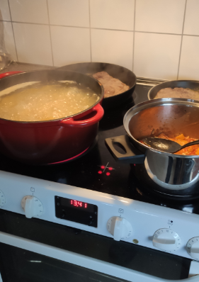Au menu ce soir, côtes de porc, ratatouille, pennes et maïs pour ceux qui aime. On peaufine l’organisation de notre journée de demain (grosse journée demain)